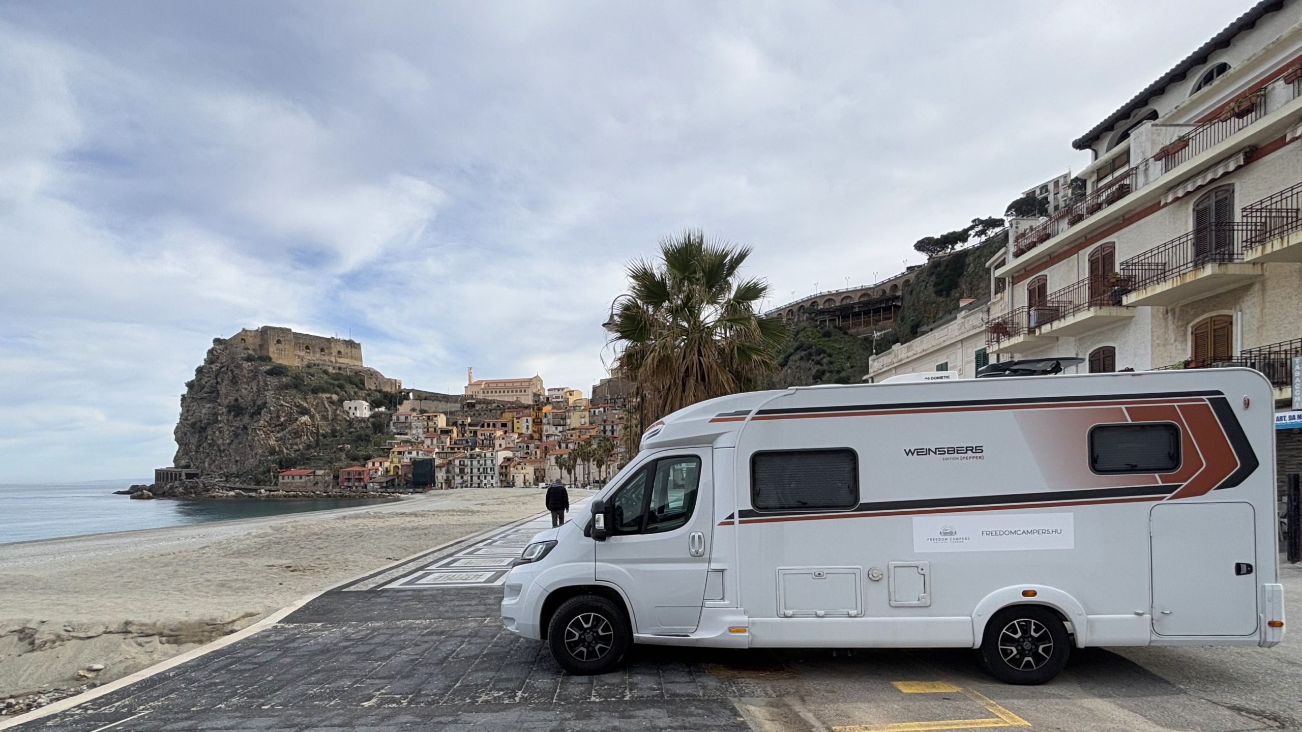 Menet közben 12v.ról, Kempingben 230V-ról, vadkempingezéskor gázról működik. Nagy, 142l beltérrel